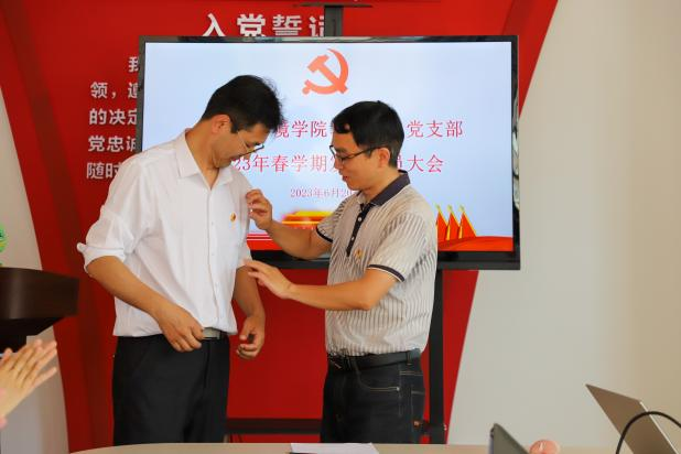 大会严格按照党员发展程序进行,发展对象庞赟佶汇报入党动机、工作表现等情况,入党介绍人结合发展对象在培养考察期的思想动态、工作表现发表意见,支部书记代表支委会向大会汇报发展对象政治审查情况。经现场党员充分讨论,无记名投票等环节,一致同意接受庞赟佶为中共预备党员。党委副书记吴晅为新发展党员佩戴党徽,全体党员在支部书记何丽娟的带领下进行庄严宣誓。庞赟佶同志进行表态发言,表示今后将按照《中国共产党章程》规定严格要求自己,不断加强党性修养,积极工作,用实际行动践行自己的誓言。