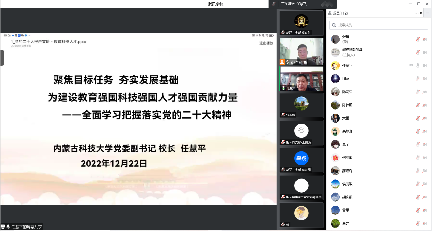 为全面深入学习宣传贯彻党的二十大精神,推动党的二十大精神入脑入心、落地生根, 12月22日上午,公司邀请公司党委副书记、董事长任慧平教授为公司全体教师作党的二十大精神专题宣讲。公司党委书记张鑫主持宣讲会。