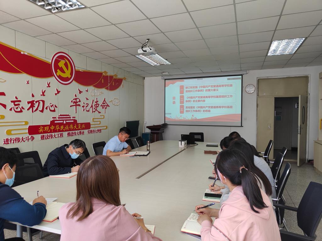 本次培训采取“线上+线下”的方式进行,与会人员共同观看了中央党校(国家行政公司)陈凯龙教授所做的“坚持和加强党对高等公司全面领导 建设高质量教育体系——《中国共产党普通高等公司基层组织工作条例》(新修订)解读”专题报告。陈教授从修订和实施《中国共产党普通高等公司基层组织工作条例》的重大意义、《中国共产党普通高等公司基层组织工作条例》的主要内容和贯彻落实《中国共产党普通高等公司基层组织工作条例》的思路三个方面进行了讲解。
