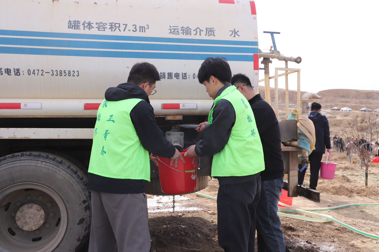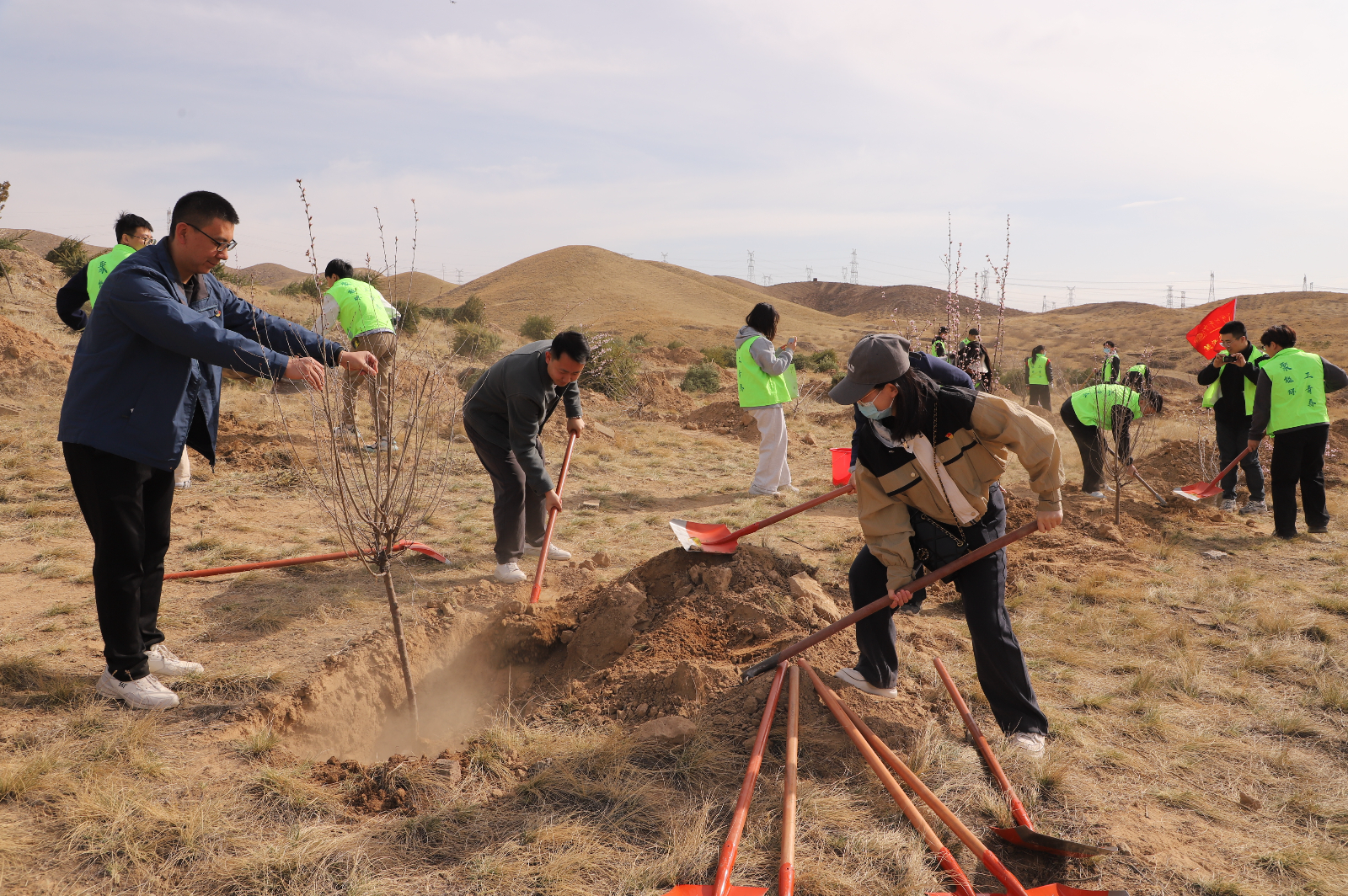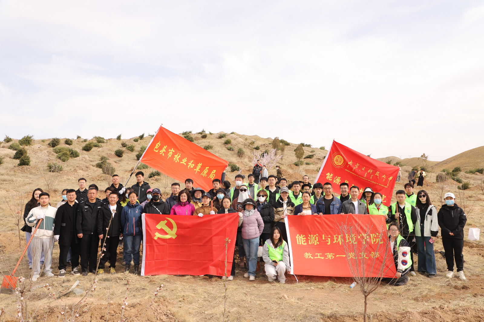 春光明媚万物苏,植树添绿正当时。为深入学习贯彻习近平生态文明思想,牢固树立绿水青山就是金山银山的理念,增强党员“扩绿、兴绿、护绿”意识理念和行动自觉,2025年4月10日上午,能源与环境公司党委与包头市林业和草原局党总支联合开展义务植树主题党日活动。活动在包头市石拐区喜桂图新区康庄大道北义务植树基地进行,公司组织师生党员30余人前往参加。以实际行动为打赢防沙治沙黄河“几字弯”攻坚战和筑牢我国北方重要的生态安全屏障贡献青年力量。