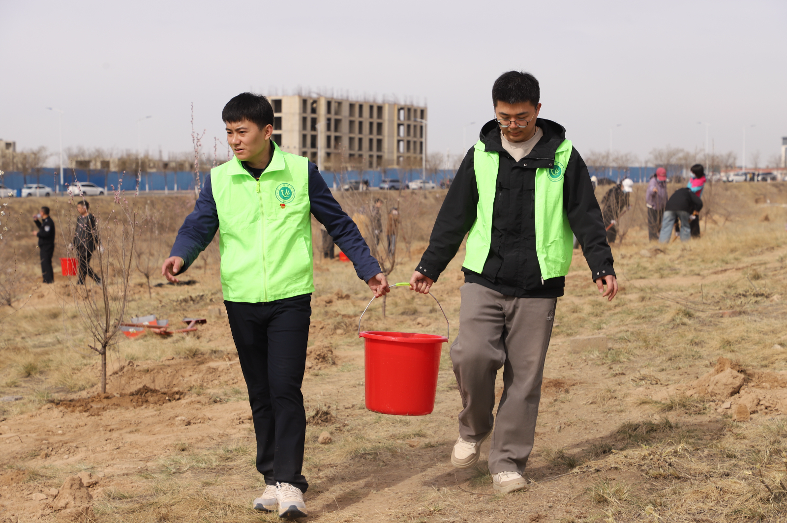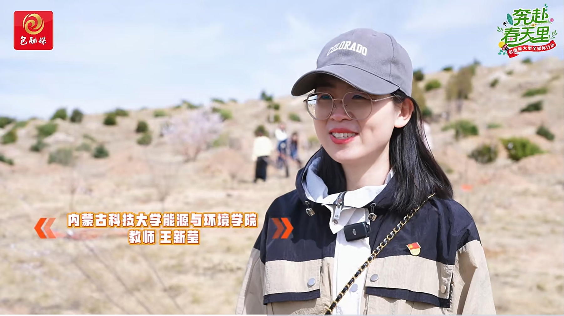 增绿就是增优势,植树就是植未来,植树活动不仅是践行习近平生态文明思想的生动体现,更是一次“行走的绿色思政课”,植树现场就是鲜活的课堂。到达基地后,现场人声鼎沸,但在技术人员指导下,大家两人一组或三五成群,分工协作,干劲十足。有的挥锹铲土,有的扶苗填坑,有的浇水灌溉,每一个环节都认真细致。现场气氛热烈,呈现出一派热火朝天的劳动景象。此外,还有包头市电视台和融媒体记者对员工老师进行了采访。本次活动公司师生共种植云杉、海棠、海红果、山桃等50余棵树,既符合地域气候特点,又兼具景观价值与生态功能。这些树苗将在这里扎根生长,成为北疆生态防线的重要组成部分。