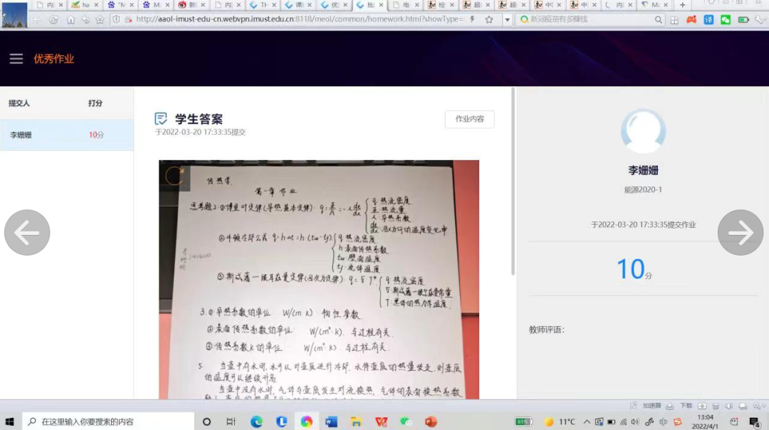 《传热学》本学期线上教学,利用手写板给同学们结合PPT、课本开展网络教学,经过几周的最重要体会是,将更多的知识可以娓娓道来,以一个聊天的方式给员工们把传热的概念,思路,求解方法传递给员工,且员工通过弹幕、微信等信息做到及时反馈,难点迅速的在课堂上就可以解决。同时将教学资料、作业、答疑都放入网络教学平台,利用平台的便利性来解决教学资源共享,教学监督、互动问题,个人认为效果还是不错的。