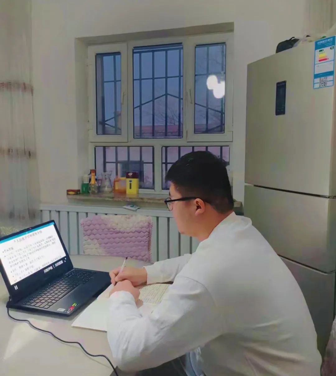 上了一上午“云端课程”的李泽龙同学说:“云端授课”的形式给我们增加了许多自由度的同时也要求我们有更高的自觉性。虽然网络课堂中有签到、课堂测试等考勤和考察方式,但是没有了面对面的约束,老师并不知道屏幕后面的我们是什么状态。不过学习本身就是自己的事,面对疫情,国家在努力,公司在努力,老师在努力,我们也要努力,我们要以更加积极的状态去学习,和大家共同战胜这场战役!