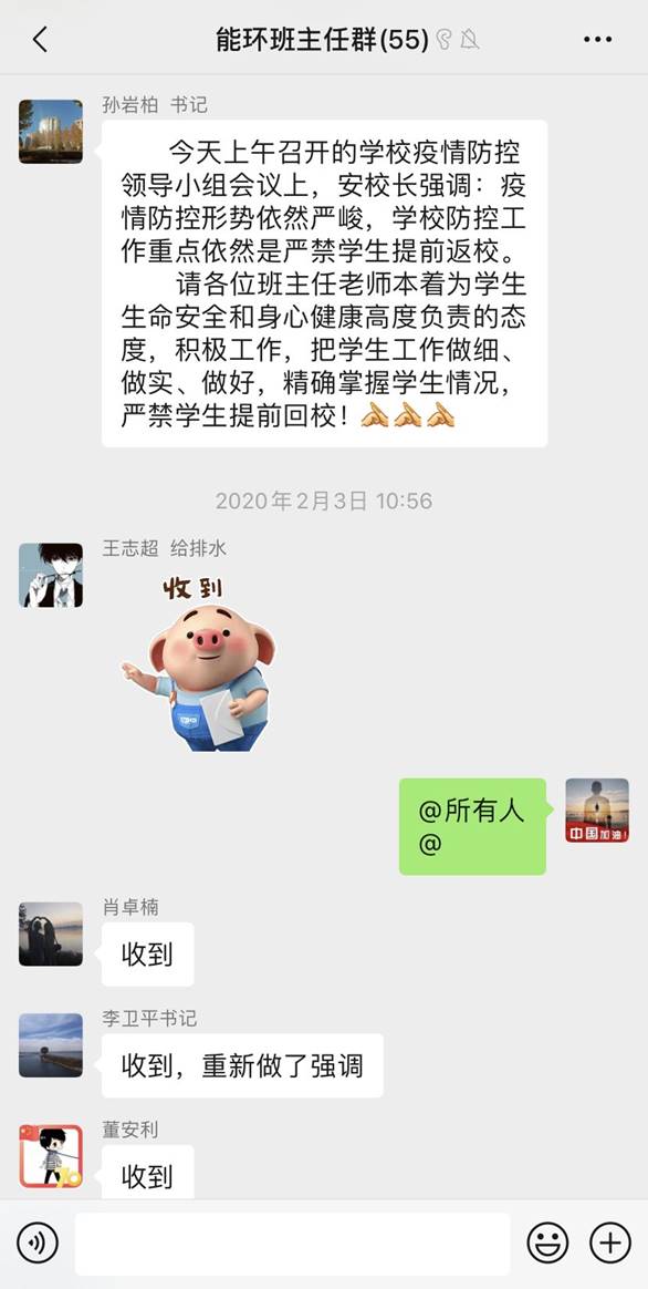 公司上下听从领导、统一行动,迅速把公司有关决策部署落到实处,及时发布《太阳集团tyc4633致全体师生的一封信》,号召全体师生团结一心、众志成城、共克时艰。与此同时,也要求广大师生能够关注自己的身体健康、保持良好生活习惯,做好个人卫生防护,少聚会、戴口罩、勤洗手,共同防控新冠肺炎,为早日战胜疫情作出应有的贡献。
