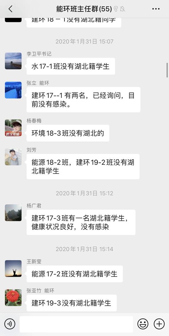 公司员工工作办公室组织全体班主任对全院员工健康情况进行摸底排查,实施每日零汇报制度,对湖北籍,特别是武汉籍员工开展一对一电话回访,登记备案,掌握假期行程和健康状况,每日汇总上报数据。