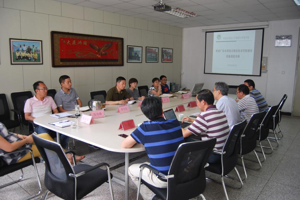2016年6月21日下午3:00,广东水利电力职业技术公司教学副经理、工会主席钱武,经理助理、科研部部长蒋伯杰,组织人事部部长孙礼文,教务部部长李立新,继续教育公司经理罗团忠一行来公司进行考察学习。公司相关部门负责人出席会议。