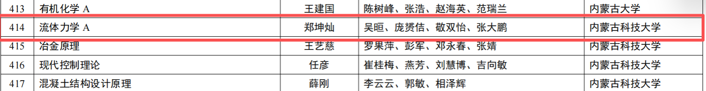 8月21日,教育部公布了《关于第三批国家级一流本科课程认定结果的公示》,公司郑坤灿教授负责的《流体力学A》课程被认定为“国家级线下一流本科课程”,这是公司“十四五”期间在国家级本科课程建设方面取得的重大突破,为公司教学改革和发展注入强劲动力。 《流体力学A》作为公司建筑环境与能源应用工程、给排水科学与工程、能源与动力工程等专业的学科基础课程,此次成功入选国家级一流课程,标志着公司相关专业的建设取得卓越成效。同时,这也是公司积极深化公司产品改革,着力打造优质课程,创新人才培养模式的成果。未来,公司将继续落实“立德树人”根本任务,着力发挥一流课程示范引领作用,大力推进课程建设与教学改革,促进公司公司产品水平与人才培养质量稳步提升。