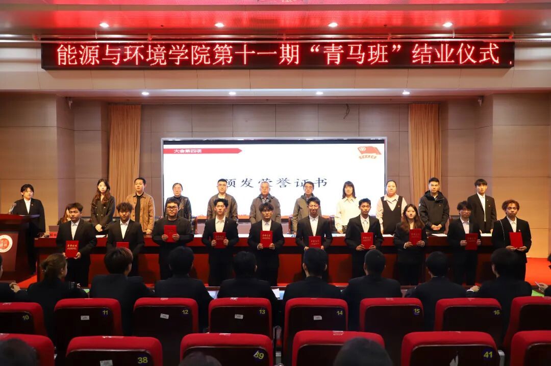 公司负责人宣读第十一期“青马班”优秀学员名单,主席台就座嘉宾为优秀学员颁发荣誉证书。