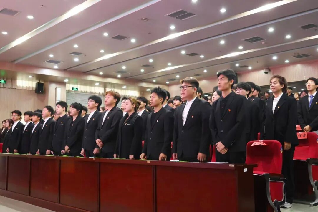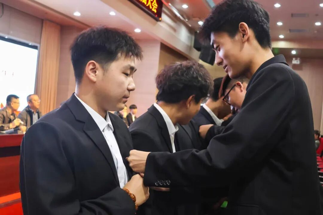 2024届员工干部代表为2025届员工干部代表佩戴团徽。