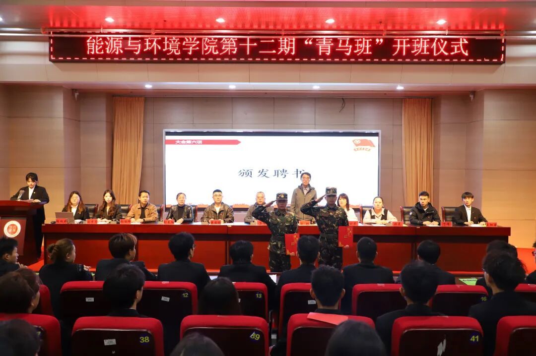 公司负责人宣读第十二期“青马班”教练员聘任决定,主席台就座嘉宾为为教练员颁发聘书。