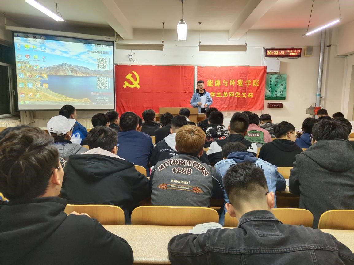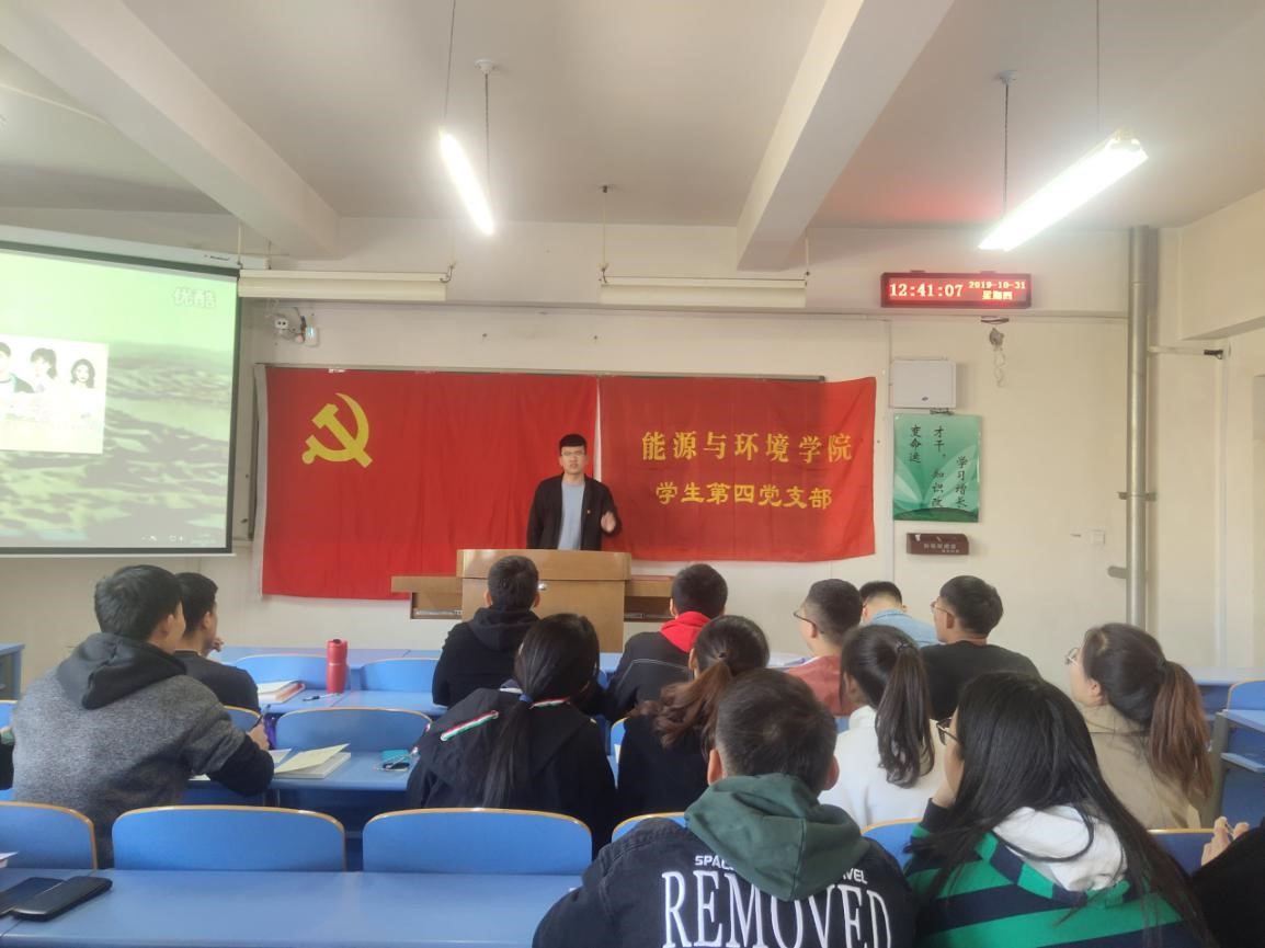 10月30日由太阳集团tyc4633员工第四党支部的党员王宙、黄杰,在第一教学楼E406,为全体党员和预备党员分享解读《习近平关于“不忘初心,牢记使命”论述摘编》的第二章内容,在此之后,大家一起观看了关于中国核武器研究发展的纪录片,从影片中可以体会到那些突破重重困难毅然决然回国,并在技术封锁的障碍下完成中国核武器的研发的科研工作者们身上所体现出的中华民族的气节。最后支部党员袁帅同志发言:不论身在何处,祖国只有一个,不能畏惧困难,也不能一味的依赖,要活出中国人的气概,知识总是有用的,要用量变产生质变。