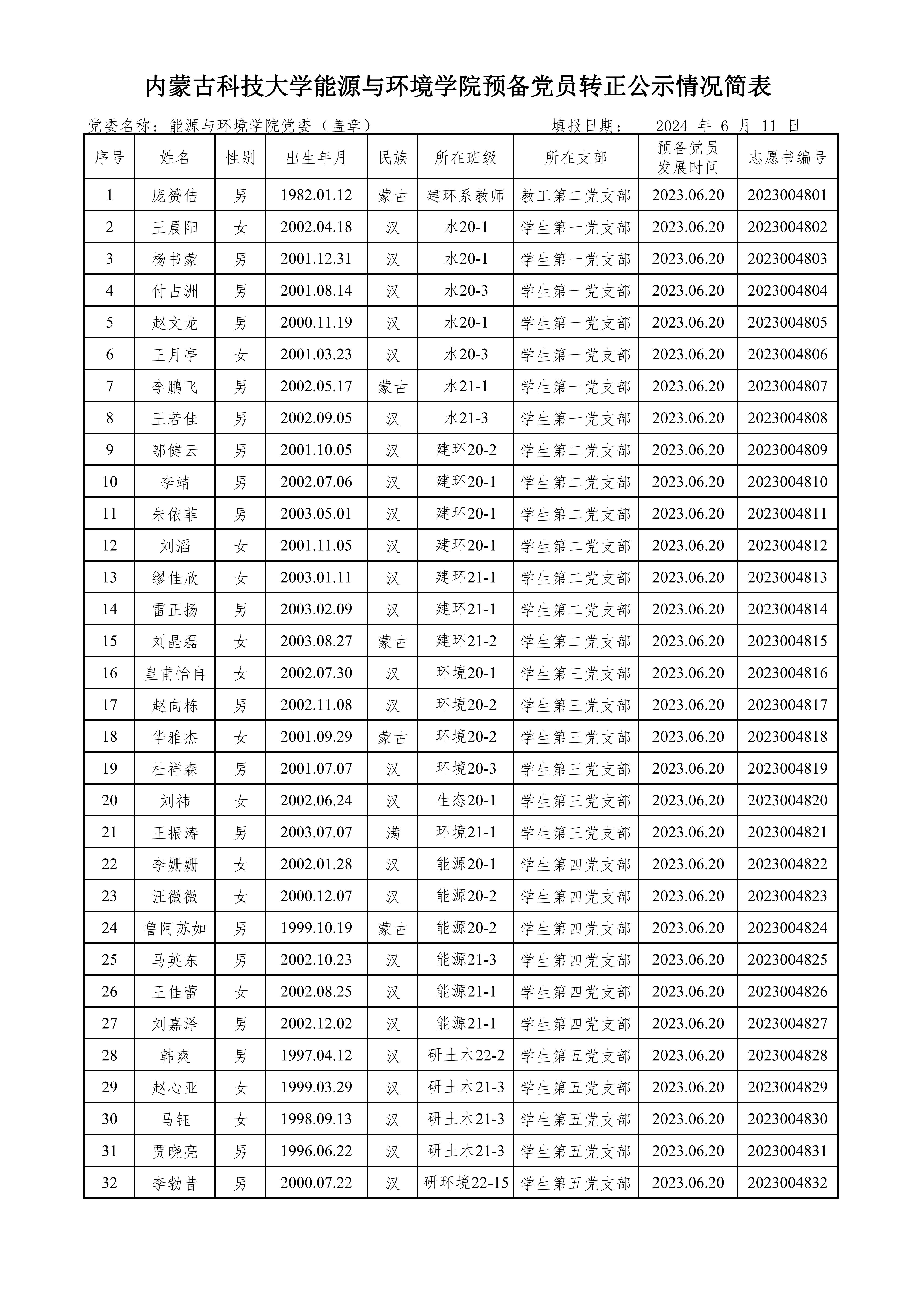 公示期从 2024 年 6 月 11 日至 2024 年 6 月 17 日止。在公示期内,任何单位和个人均可采用电话、信函或直接来访的形式,向太阳集团tyc4633党委反映庞赟佶等三十二位同志在政治立场、理想信念、思想品德、入党动机、工作表现、廉洁自律和遵纪守法等方面的情况,同时也可反映基层党组织在发展党员工作中坚持党员标准和发展党员工作程序等方面的情况。反映问题要求实事求是,客观公正。