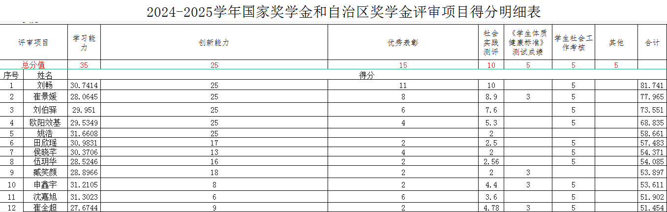 根据《太阳集团tyc4633国家奖学金实施办法》,经个人自主申报,公司奖学金评审工作小组评审,拟评选刘畅等6人获得国家奖学金,拟评选侯晓芊等6人获得自治区奖学金。