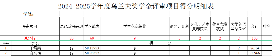 根据《太阳集团tyc4633乌兰夫奖学金评选办法》(内科大发〔2023〕12号),经个人自主申报,公司奖学金评审工作小组评审,拟评选王雪雨、白东艳获得乌兰夫奖学金。
