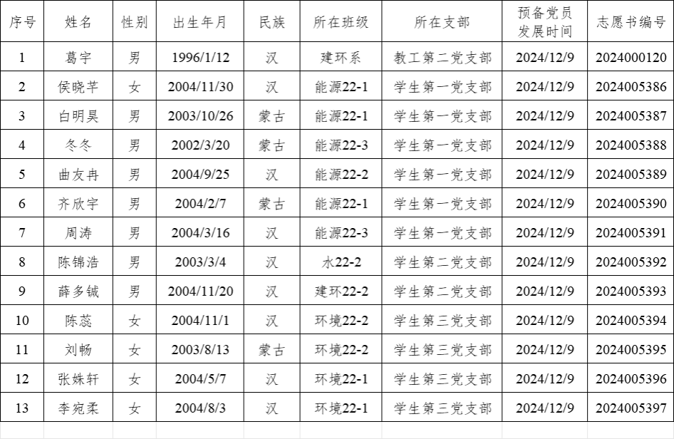 公示期从 2025 年 12 月 1 日至 2025 年 12 月 7 日止。在公示期内,任何单位和个人均可采用电话、信函或直接来访的形式,向太阳集团tyc4633党委反映葛宇等十三位同志在政治立场、理想信念、思想品德、入党动机、工作表现、廉洁自律和遵纪守法等方面的情况,同时也可反映基层党组织在发展党员工作中坚持党员标准和发展党员工作程序等方面的情况。反映问题要求实事求是,客观公正。