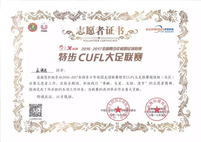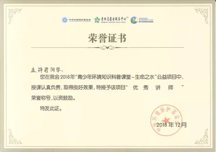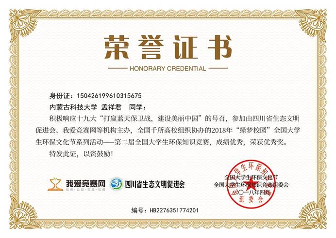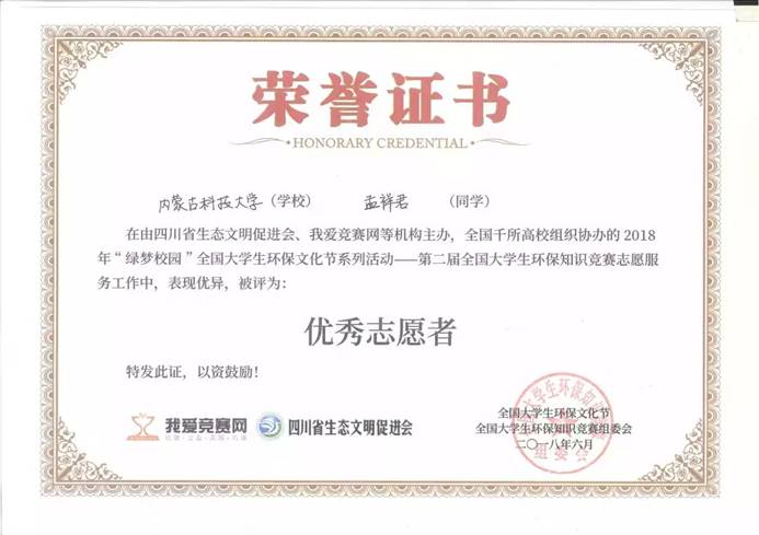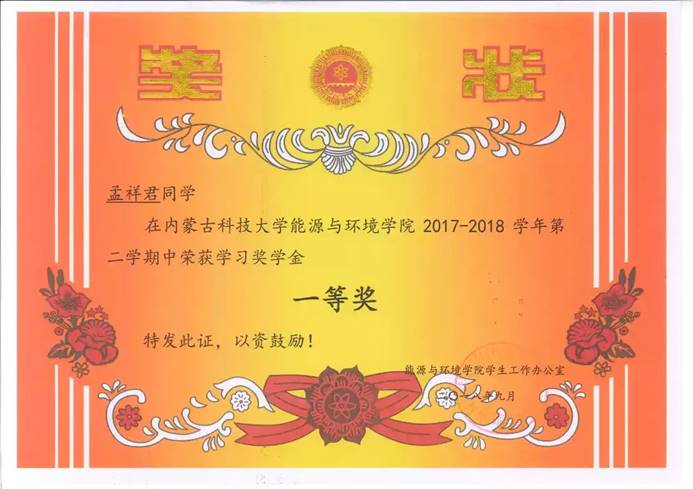在校期间的孟祥君,曾担任太阳集团tyc4633员工第四党支部组织委员,在职其间充分发挥党员先锋模范作用,协助支部书记认真完成支部的每一项工作;他热爱生活,努力学习,多次获得学习奖学金,并顺利通过国家英语四级考试、国家计算机等级考试二级、三级;课余时间中也不断突破自我,积极参与各类社会实践活动,荣获“全国老员工环保知识竞赛优秀奖”、"绿梦校园全国老员工环保文化节优秀工作者”、“2018年校级朗诵比赛荣获团体赛二等奖”等多项荣誉。